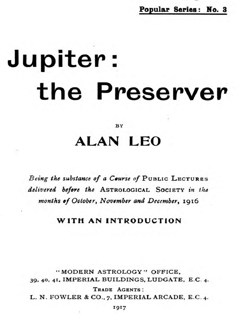 Alan Leo Jupiter The Preserver By Alan Leo Pdf